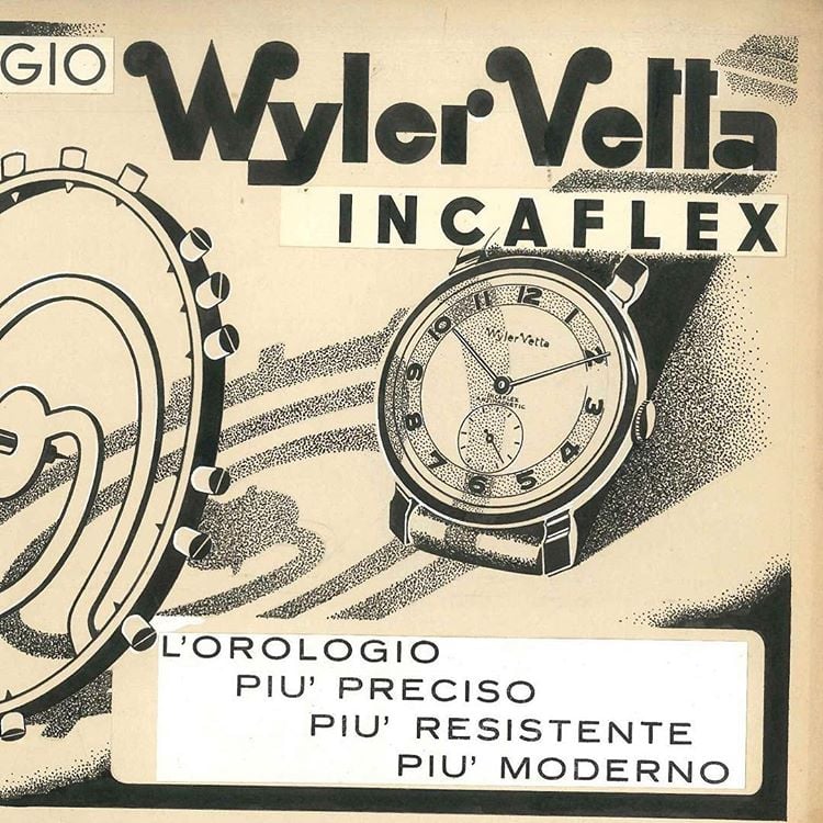 INCAFLEX. Nel 1927 Paul Wyler realizza un bilanciere resistente e robusto, caratterizzato da una spirale a bracci flessibili in grado di ammortizzare gli urti piu'violenti e di assorbire anche i colpi laterali. Incaflex segna una tappa importante nella storia dell'orologeria, trasformando l'orologio fragile e delicato da indossare solo negli eventi importanti in un accessorio di uso quotidiano, robusto, resistente e affidabile. Siamo negli anni 30 e con Incaflex tutti cominciano ad avere al polso un orologio... Wyler Vetta.